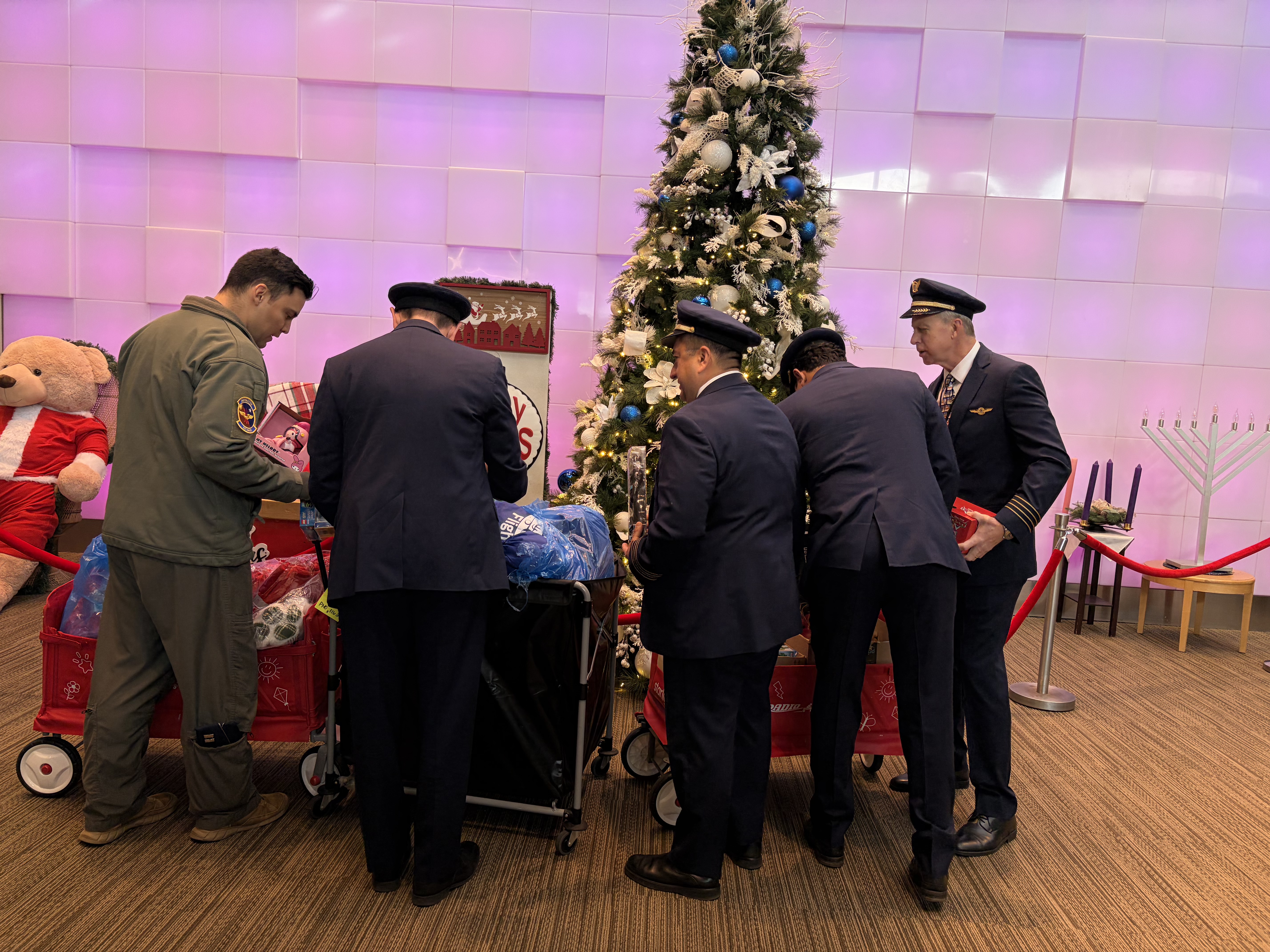 Description: The Houston Pilots for Kids group visited Texas Children's Hospital in downtown Houston on December 3, 2025. This event was the hospital's annual Christmas Tree Lighting and Pilots for Kids had an activity booth setup to distribute gifts and smiles. Hundreds of plush stuffed animals, pullback airplanes and other items were given out and the kids really enjoyed!