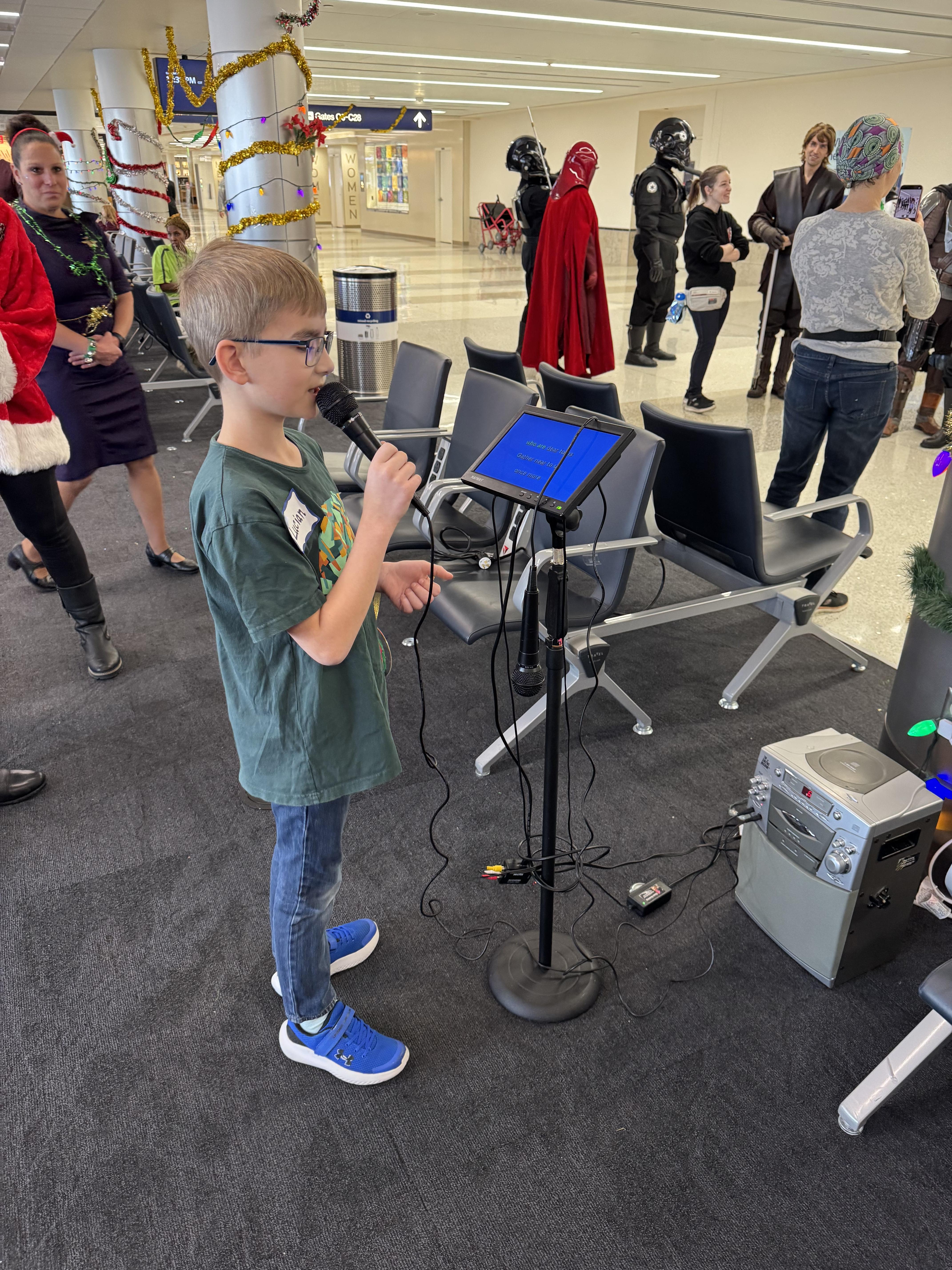 Description: The Houston Pilots for Kids visited the Texas Children's Hospital - The Woodlands Campus on December 3, 2025 for their annual Christmas Tree Lighting. This visit took place in the Main Lobby and was a great success thanks to our PFK volunteers! This event featured our "Fly the Plane into the Hangar" activity and "Pilots License" photo prop which the kids enjoyed. Hundreds of aviation themed stuffed animals, pull back airplanes, coloring books and other gifts were distributed bringing smiles to the kids!!!