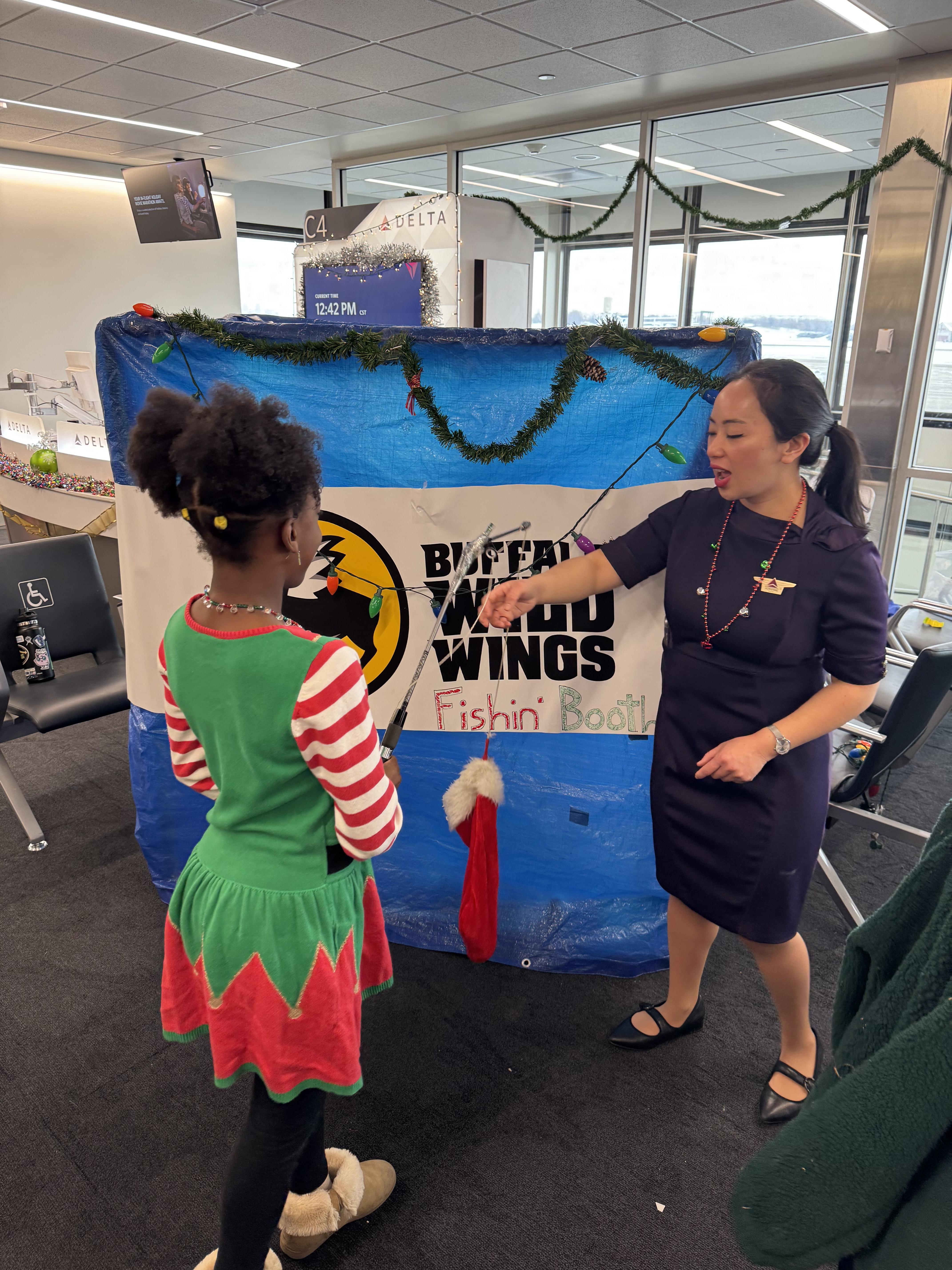 Description: The 2025 Pilots for Kids Fantasy Flight to the North Pole was held on Saturday, 06 DEC 2025 at MSP airport. And this year, while the total number of guests hosted was down somewhat to around 130, the families and children from MN Children’s Home Society and Lutheran Social Services foster care system that did attend were treated to an extra special day of fun, food, gifts and more. Over 70 volunteers including Delta pilots, flight attendants, retirees and others helped make the day an outstanding success. Thank you one and all for bringing the joy and spirit of the holidays to our guests!